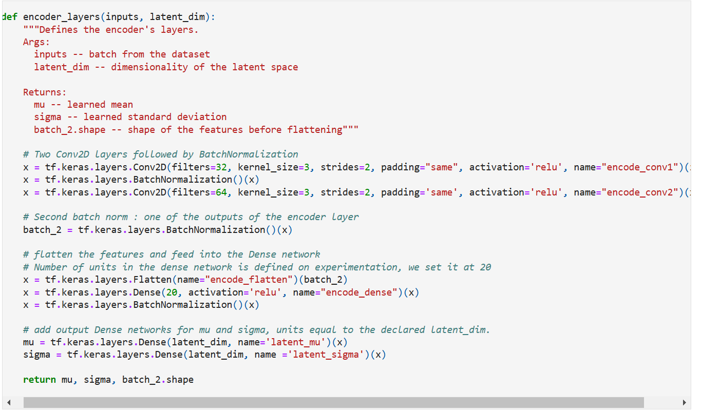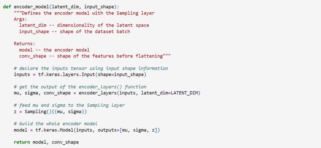 Let’s build the encoder now. For the sake of convenience, while constructing the decoder, we will also output the shape of features before flattening it. The encoder is built as shown below,