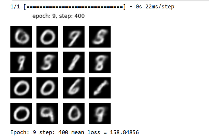 We just run the model for 10 epochs (don’t do this if you are building an actual VAE model!) and the results look like this,