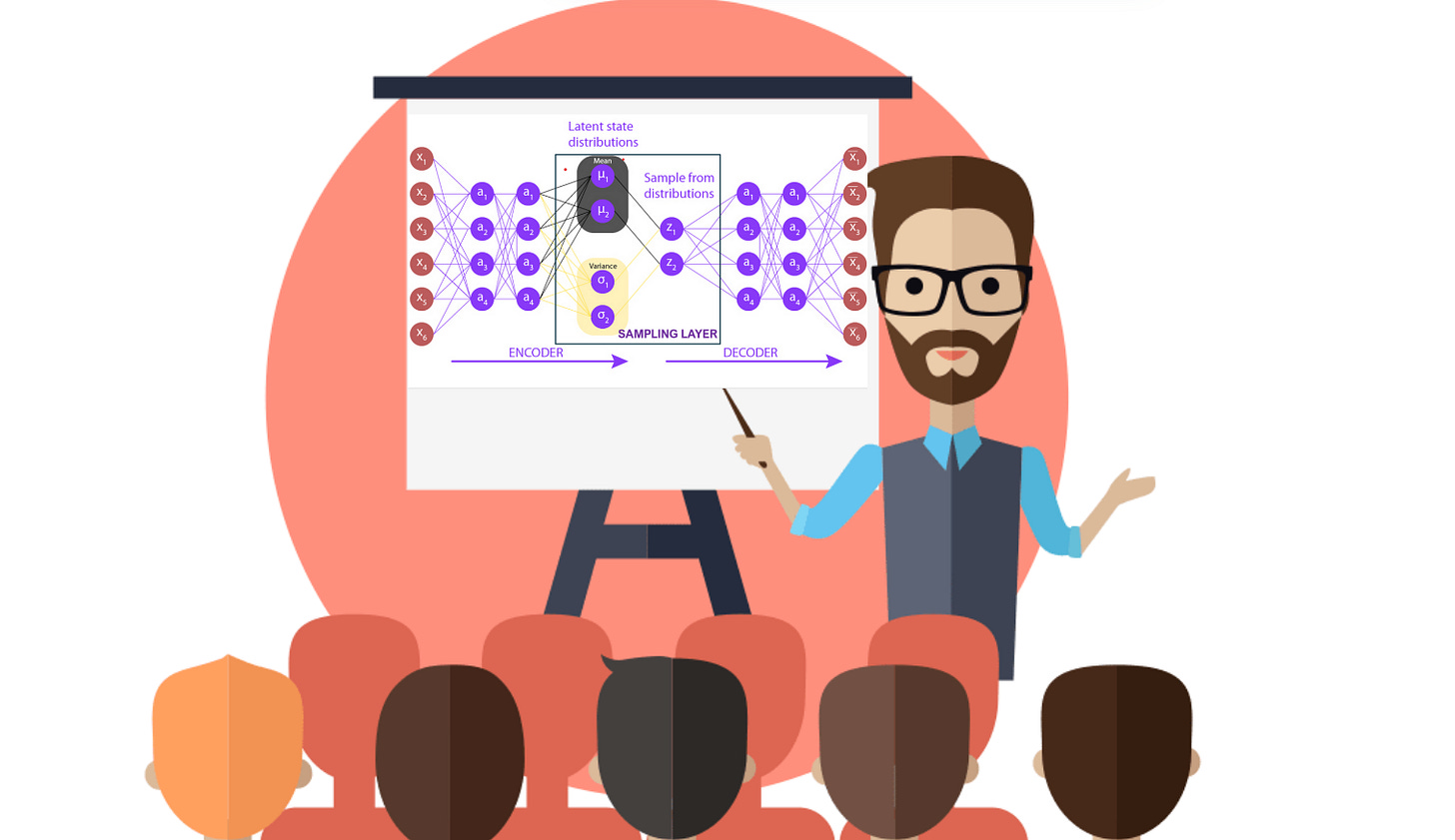 This process of embedding the input into a distribution and sampling from it to generate the output adds a probabilistic component to our model which allows the model to “generate” new samples!